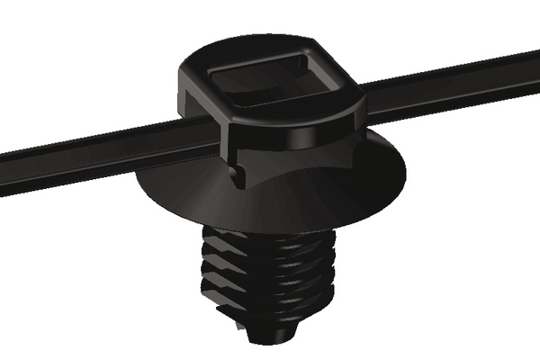 These two-piece fixings are supplied ready assembled and offer a simple and versatile method of bundling and fixing cables. The fir-tree base will easily push into pre-punched holes in panels or threaded, blind, holes and offers a very secure fixing. The two-piece design enables the head of the tie to be orientated to the required position to ease assembly, whilst the 'disc' on the top of the fir tree covers the hole and minimises the ingress of water and dirt. |