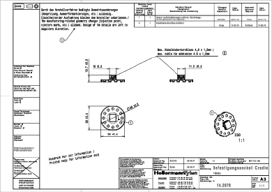 | Application | PMB5 paste mount offers a fixing solution wherever screw fixing is not allowed. Due to the design the mount can even be installed onto uneven surfaces. PMB5 paste mount is used in the railway industry as well as in the renewable energy industry. Further applications are in the electrical industry and the production of switching cabinets. The PMB5 paste adhesive mount is suitable for fixings with paste/liquid adhesive. |