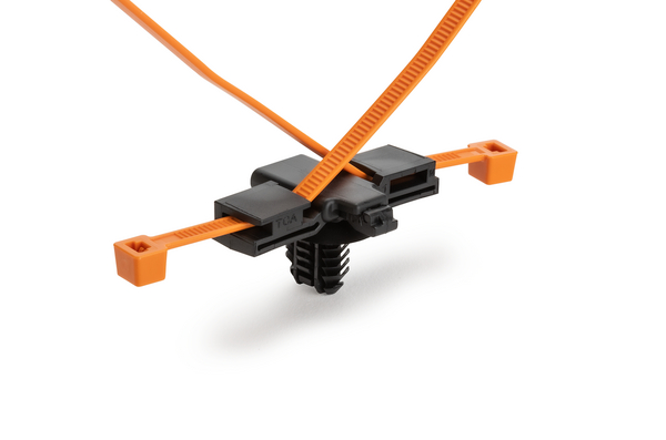 These two-piece fixings are supplied ready assembled and offer a simple and versatile method of bundling and fixing cables. The fir-tree base will easily push into pre-punched holes in panels or threaded, blind, holes and offers a very secure fixing. The two-piece design enables the head of the tie to be orientated to the required position to ease assembly, whilst the 'disc' on the top of the fir tree covers the hole and minimises the ingress of water and dirt. |