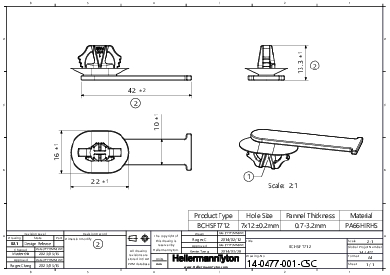 | Application | Bundling clips are designed to provide simple and easy methods of securing cable bundles, hoses, or pipes. They are fastened onto the tape bar using bundle or cable ties. The different fixing orientations allow tape clips to be used with a wide range of panel thicknesses and hole diameters. Standard bundling clips are available as well as standoff and stud mount versions. |