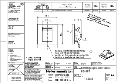 | Application | RB-Series self adhesive mounts offer greater routing freedom and also reduce the risk of corrosion compared to screw fixing mounts. They are ideally suited for tool-free installation and can be re-opened and reused easily when cables need to be replaced. These mounts can be used without the need for additional cable ties. Offering process optimization in a variety of applications. |