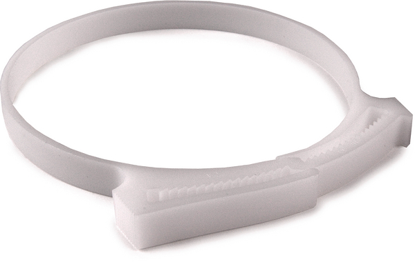 Plastic hose clamp, ⌀104.7-117.0mm, white, 25pcs.