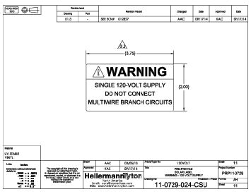 | Technical Description | 3.75" X 2" Black text on an Orange/White background that reads as: "WARNING - SINGLE 120-VOLT SUPPLY DO NOT CONNECT MULTIWIRE BRANCH CIRCUITS" - 50 per roll. |
