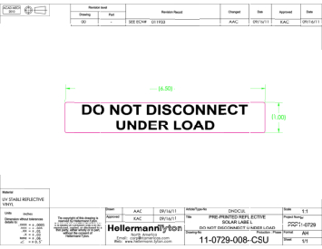 | Technical Description | 6.5" X 1" White text on red background that reads as: "DO NOT DISCONNECT UNDER LOAD" in 3/8" tall characters. 50 per pkg. |