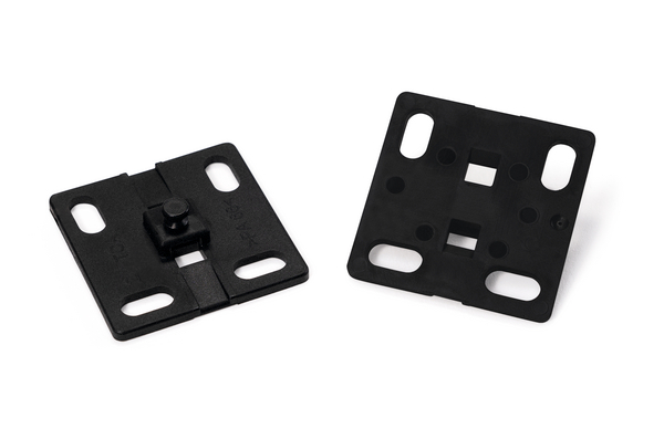 - Mounting plates can be fixed with screws, cable ties or adhesive