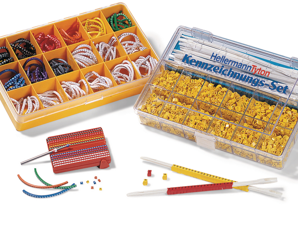HGCC1-3: 50 each of markers 0 to 3 and 25 markers size 4 to 9 in the international resistor colour code; 25 each of A, E, L, N, R, S, T, +, - and HGCC4-9: 25 each of markers 0 to 9 in the international resistor colour code; A, E, L, N, R, S, T, +, - and The refill pack for the cassette contains one basic set without TJC applicator tool. |