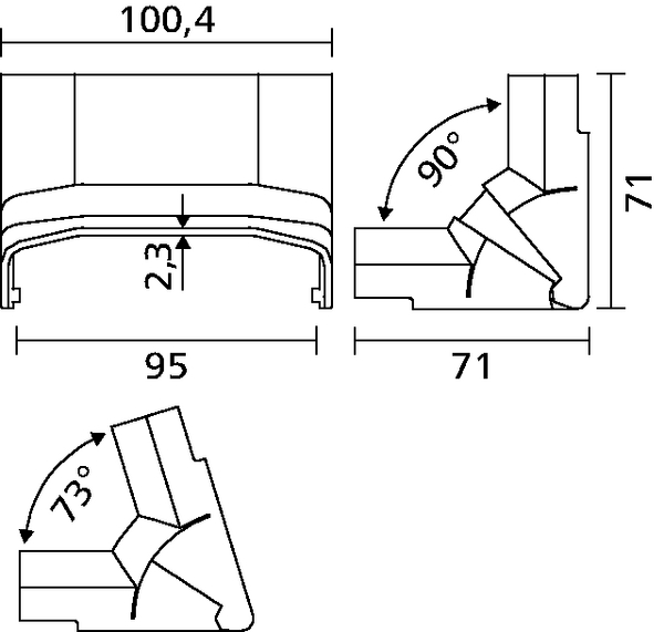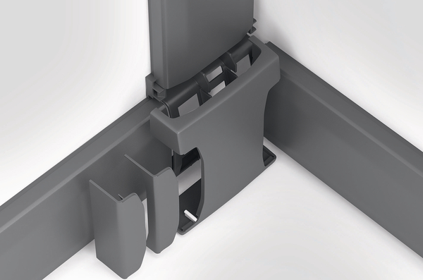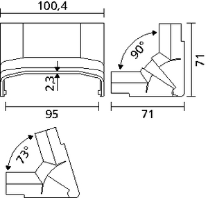 | Aplicación | El codo interior móvil se utiliza en ángulos internos de paredes y superficies en las que se instala el cableado. Permite la apertura entre 65° y 100°. |