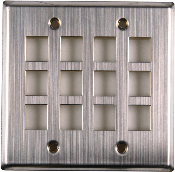 | Description | HellermannTyton offers stainless steel plates for heavy duty industrial or institutional applications. Offered in 1, 2, 3, 4, or 6 port single gang versions and 4, 6 or 12 port dual gang versions. Also available, a single port phone faceplate - modular jacks sold separately. |