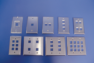 | Description | HellermannTyton offers stainless steel plates for heavy duty industrial or institutional applications. Offered in 1, 2, 3, 4, or 6 port single gang versions and 4, 6 or 12 port dual gang versions. Also available, a single port phone faceplate - modular jacks sold separately. |