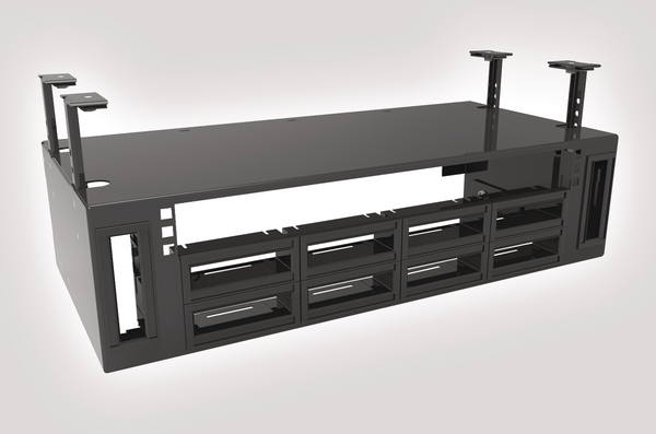 This Out of Rack configuration provides 2½U of space which will accommodate 6 port UTP copper and fibre RapidNet cassettes providing a maximum capacity of 60 copper ports of 1440 fibres (when using RapidNet MTP VHD) or a combination of both. The remaining 1U of space can be used to accommodate a 1U switch or other active equipment. Out of Rack accessories are available on request and include gland/conduit kits, basket trays and mini patch leads. |