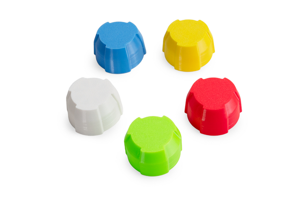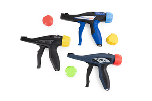 This product is designed for customers using multiple EVO hand tools to apply cable ties, each with different force requirements. The EVO end cap employees easily identify the correct tool for each cable tie based on its color, as settings are typically not changed. Previously, customers painted the knob to indicate the setting, but this 3D-printed solution offers improved visibility in a more aesthetically pleasing, HellermannTyton style. |