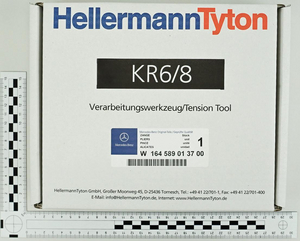 | Application | Application tool KR6/8 crimps the glass-fibre-reinforced locking pin of the KR seal and leads to plastic deformation of the tie ends. This produces a very proof permanent connection. In combination with KR cable ties this system offers high vibration resistance. One reason for customers in the railway and automotive industry to take this system as a preferred solution. |