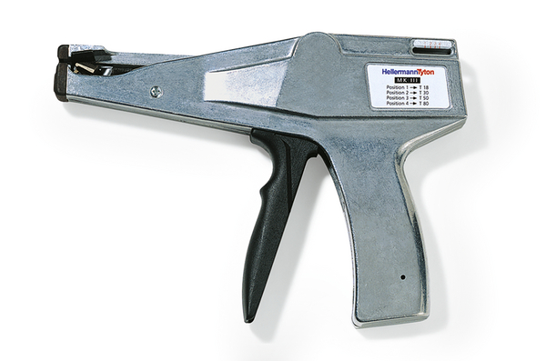 - Tough metal tool for HellermannTyton plastic cable ties up to 4.8 mm width