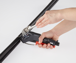 - The cut lever on the tool make it possible to punch and cut the tie easily by pushing down the cut lever.