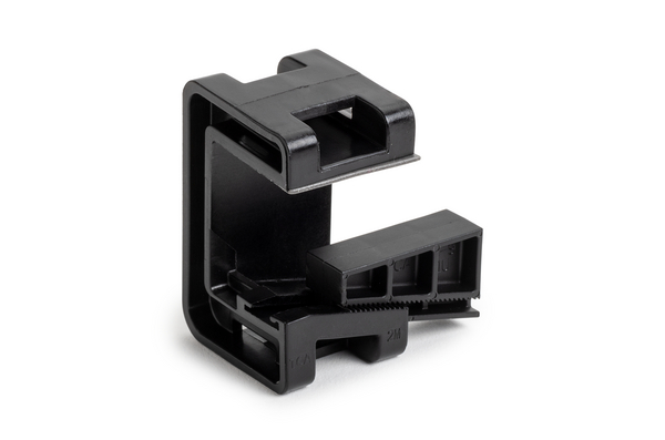 | Description | The Wedge Clip, paired with any HellermannTyton heavy duty cable tie, routes cables along a frame or rail in vertical or horizontal applications. A robust design and durable materials make it ideal for extreme-duty applications. The integrated wedge mechanism slides along a stepped grade until snug against the mounting surface. Inside the clip is a 3M™ VHB™ (Very High Bond) adhesive pad, which actually builds strength over time. This holds the clip to the work surface instantly, enabling installers to place it into position without worrying about it falling off prior to fastening. The combination of adhesive and the clip’s vice-like compression result in incredible pull-off resistance without the need to drill holes. |