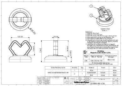 | Material | Neodymium alloy 35M (NDFEB35M), Polyacetal (POM), Steel (ST) |