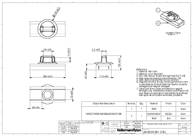 | Material | Neodymium alloy 45M (NDFEB45M), Polyacetal (POM), Steel (ST) |
