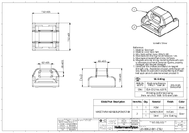 | Material | Neodymium alloy 35M (NDFEB35M), Polyacetal (POM), Steel (ST) |