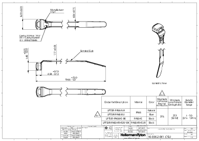 | Description | HellermannTyton Low Profile Cable Ties feature a compact, contoured head designed to use less space in confined areas and reduce protrusions that might otherwise interfere with or damage adjacent wire insulation and hoses. The outside serration provides a smooth inside surface to further minimize indentation or damage to soft bundles while offering high tensile strength and low insertion force. |
