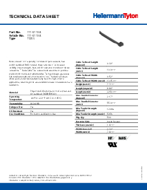 | Description | Manufactured from a specially formulated impact-resistant, heat and UV stabilized PA66 material, these cable ties offer increased flexibility, impact strength, heat and UV resistance to endure moisture fluctuations. T-Series Cable Ties feature inside serrations to provide a positive hold on wire and cable bundles. The head design guarantees high tensile strength and a low insertion force. The bent tail design allows quick and simple installations by hand. For high-volume applications, tensioning tools are available to ensure consistent and safe installation. |