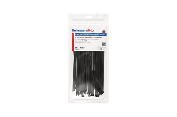 | Application | These inside serrated cable ties are made from heat stabilized Polyamide 6.6 (PA66HS). They can be applied in environments with continuous temperatures up to +105 °C. T-Series cable ties can be easily installed by hand or using an application tool to ensure consistency of installation. |