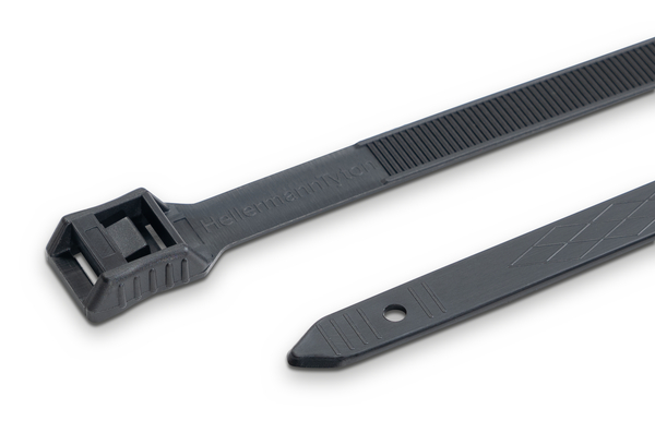 | Application | The low profile head cable ties from the SPH-Series meet a wide range of needs. They can be installed both indoors and outdoors, thanks to their UV resistance. They are particularly valued for cable tray installations as well as in the construction sector. These ties are also increasingly used in industrial applications. |