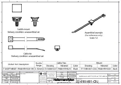 | Cable Tie | Polyamide 6.6, high impact modified, heat and UV-stabilised (PA66HIRHSUV) |
