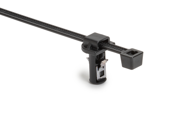 | Description | HellermannTyton Blind Hole Mount Cable Ties for threaded and nonthreaded holes offer an easy-to-use method for bundling and affixing cables. The two-piece design includes a heat-stabilized cable tie and formula-matched, 1/4" mount that features a low push-in force and aggressively resists pull out. Performs equally well in threaded or nonthreaded blind holes. Mount can slide along cable tie to adjust orientation if needed. Fastener can be removed from hole using a hex driver, ensuring reuse if desired. |