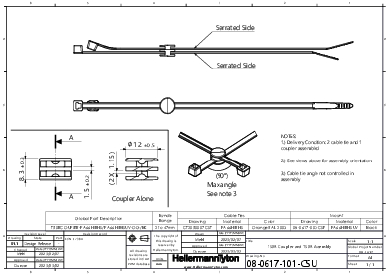 | Description | The Coupler is the simple way to connect two cable ties for a parallel routing of two bundles. His special design allows the ties 90 degrees of rotation. This is ideal for all applications where the cable, pipe or hose should move flexible in relation to the fixing point. The Coupler can be used with one or two cable ties. This allows easily subsequent installation or replacements of further cables, pipes or hose. |
