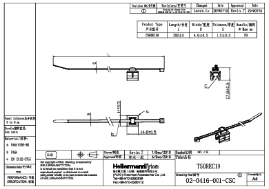| Cable Tie | Polyamide 6.6, high impact modified, heat stabilised (PA66HIRHS) |