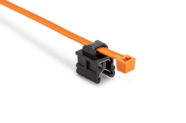 Fixing tie for edge, inside serrated, ⌀1.0-50.0mm, orange/black, 500pcs.
