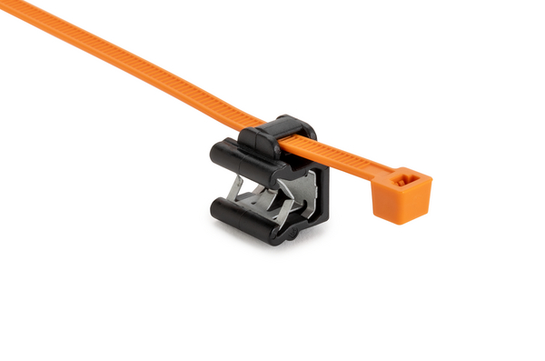 Fixing tie for edge, inside serrated, ⌀1.0-50.0mm, orange/black, 500pcs.
