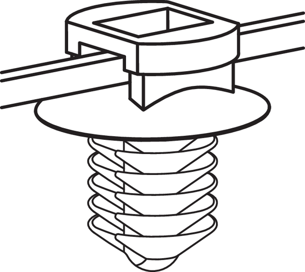 - Pre-assembled 2-piece fixing tie with fir tree foot part