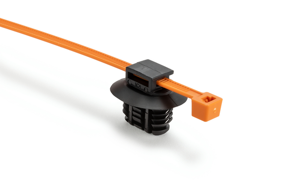 Fixing tie for hole (oval), inside serrated, ⌀5.0-50.0mm, orange/black, 2000pcs.