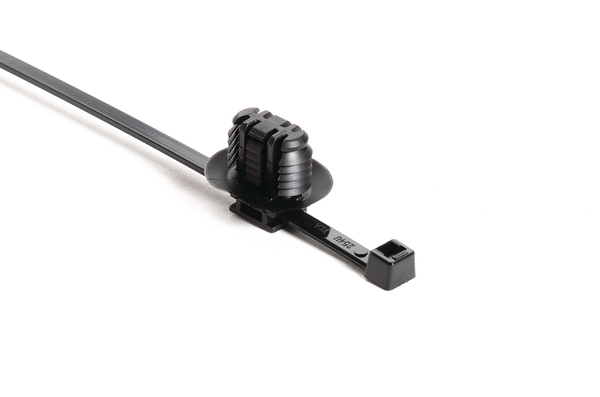 These two-piece fixings are supplied ready assembled and offer a simple and versatile method of bundling and fixing cables. The fir-tree base will easily push into pre-punched holes in panels or threaded, blind, holes and offers a very secure fixing. The two-piece design enables the head of the tie to be orientated to the required position to ease assembly, whilst the 'disc' on the top of the fir tree covers the hole and minimises the ingress of water and dirt. |