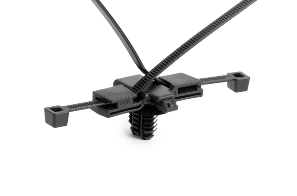 These two-piece fixings are supplied ready assembled and offer a simple and versatile method of bundling and fixing cables. The fir-tree base will easily push into pre-punched holes in panels or threaded, blind, holes and offers a very secure fixing. The two-piece design enables the head of the tie to be orientated to the required position to ease assembly, whilst the 'disc' on the top of the fir tree covers the hole and minimises the ingress of water and dirt. |
