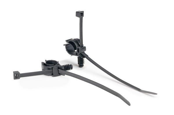 | Short Description | Cable clip, round hole, with pipe / tube holder and cable tie, for parallel routing, black |