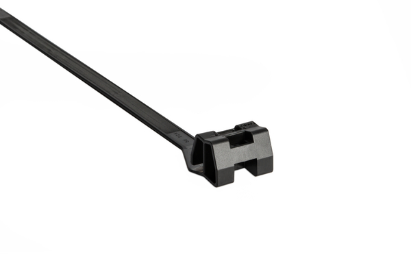 | Application | Designed as a catenary mounting tie it is simple to use. Typical applications are for suspending cables between buildings, supporting antenna cables or installation of railway signalling cables.Aerial Support Ties feature a built-in spacer to separate cables from the support wire and prevent abrasion. Formulated from a special nylon blend, these ties are specifically suited for long-term outdoor use. The bent tail allows for quick and simple installation by hand. |