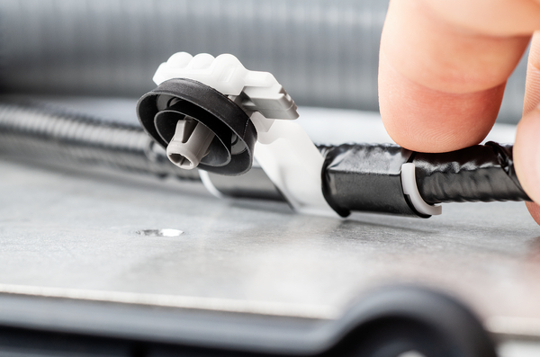 | Application | Bundling clips are designed to provide simple and easy methods of securing cable bundles, hoses, or pipes. They are fastened onto the tape bar using bundle or cable ties. The different fixing orientations allow tape clips to be used with a wide range of panel thicknesses and hole diameters. Standard bundling clips are available as well as standoff and stud mount versions. |