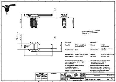 | Material | Polyamide 6.6, high impact modified, heat stabilised (PA66HIRHS) |