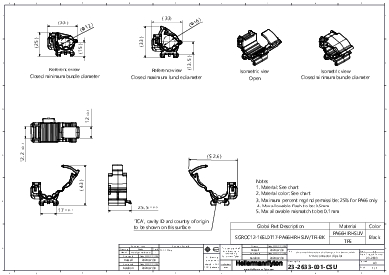 | Material | Polyamide 6.6, high impact modified, heat and UV-stabilised (PA66HIRHSUV), Thermoplastic Elastomer (TPE) |
