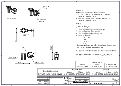 | Application | Offering a simple and secure method of attaching pipes or hoses to panels. Originally designed for the automotive industry they are finding a wide variety of applications in all industries using sheet metal panels with studs or weld studs. The use of weld studs avoid the problems with 'holes' (ingress of moisture, corrosion etc.). |