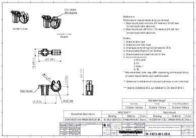 | Application | Offering a simple and secure method of attaching pipes or hoses to panels. Originally designed for the automotive industry they are finding a wide variety of applications in all industries using sheet metal panels with studs or weld studs. The use of weld studs avoid the problems with 'holes' (ingress of moisture, corrosion etc.). |