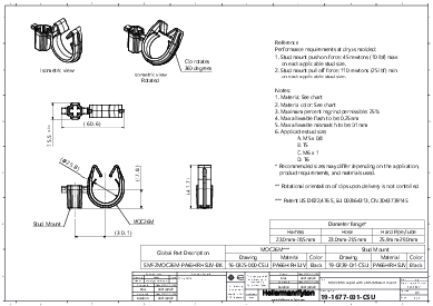 | Application | Offering a simple and secure method of attaching pipes or hoses to panels. Originally designed for the automotive industry they are finding a wide variety of applications in all industries using sheet metal panels with studs or weld studs. The use of weld studs avoid the problems with 'holes' (ingress of moisture, corrosion etc.). |