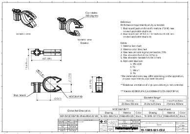 | Application | Offering a simple and secure method of attaching pipes or hoses to panels. Originally designed for the automotive industry they are finding a wide variety of applications in all industries using sheet metal panels with studs or weld studs. The use of weld studs avoid the problems with 'holes' (ingress of moisture, corrosion etc.). |