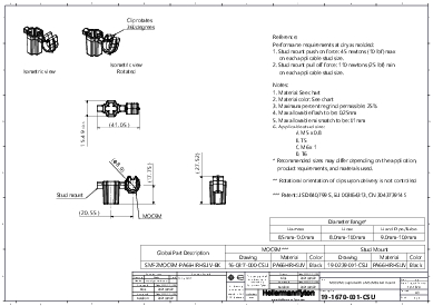 | Application | Offering a simple and secure method of attaching pipes or hoses to panels. Originally designed for the automotive industry they are finding a wide variety of applications in all industries using sheet metal panels with studs or weld studs. The use of weld studs avoid the problems with 'holes' (ingress of moisture, corrosion etc.). |