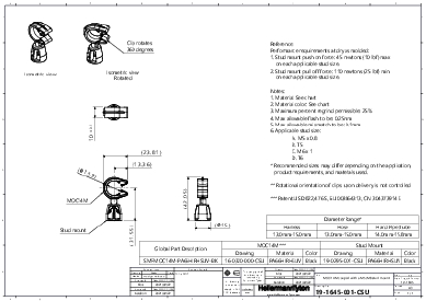 | Application | Offering a simple and secure method of attaching pipes or hoses to panels. Originally designed for the automotive industry they are finding a wide variety of applications in all industries using sheet metal panels with studs or weld studs. The use of weld studs avoid the problems with 'holes' (ingress of moisture, corrosion etc.). |