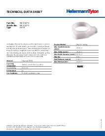 | Description | The Snapper Hose Clamp features a ratchet-style closure for reduced assembly time. It can be added after connection of the hose. Release by sliding the ratchet ends apart. These white polyacetal Snappers can be used in under-hood applications and are stable in a wide variety of chemicals including salts, bases, alcohols, ethers, detergents, gasoline, lubricating oils and greases. Custom design and color options are available based upon application and volume requirements. |