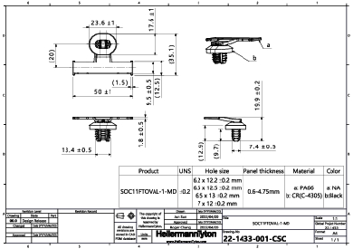 | PART DESCRIPTION | SOC11FTOVAL1MD-PA66HIRHS/EPDM-BK/NA |
