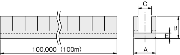 Grommet strip, T=2.3mm, W=4.4mm, W2=2.3mm, H=5.2mm, H2=4.0mm, -40 °C to +85 °C, natural, 100m